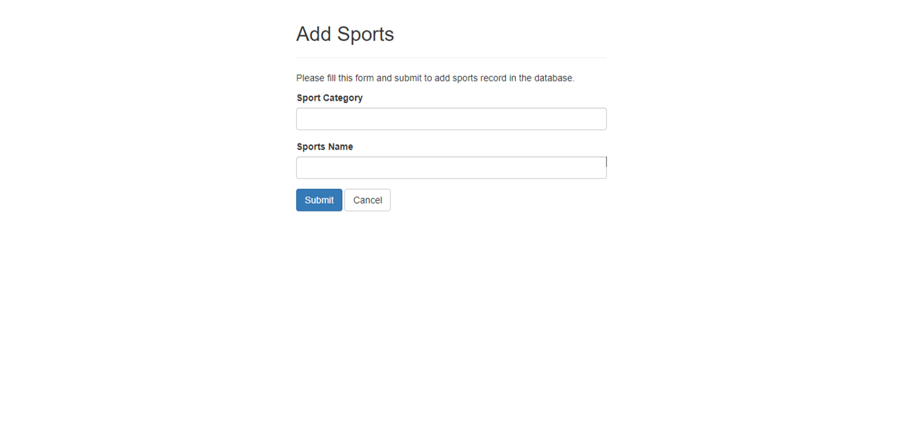 < p >Please fill this form and submit to add sports record in the database.< /p >